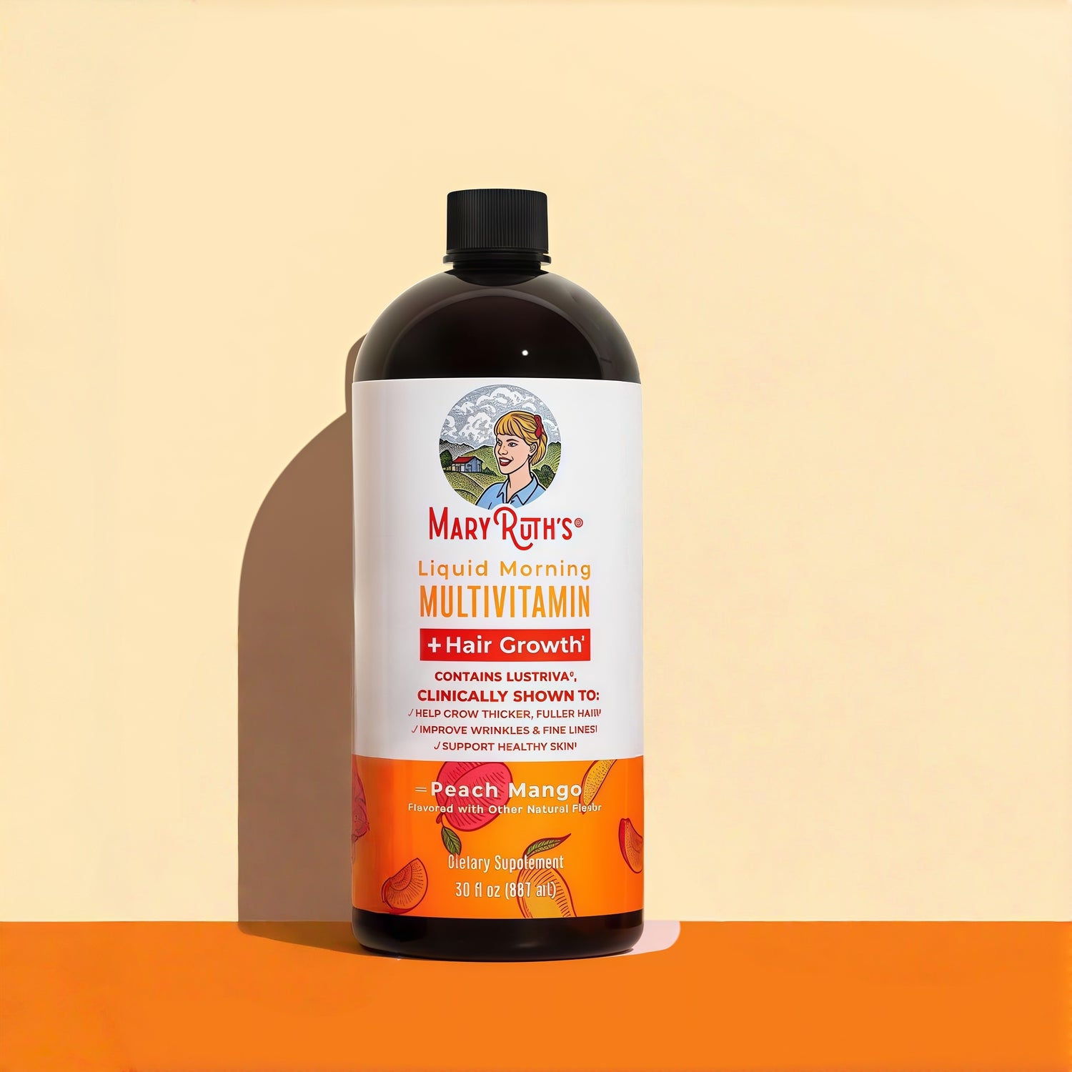 Boost your hair, skin, and nails with MaryRuth’s liquid multivitamin enriched with Lustriva®. Clinically shown to help women grow thicker, fuller hair and smooth fine lines in just weeks, this formula also nourishes your skin and supports overall wellness.*